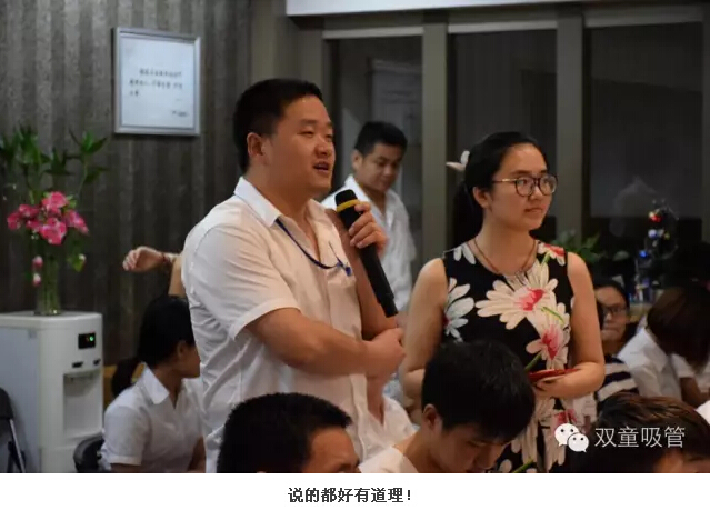 一看完這個故事,就有員工站起來發(fā)表感悟啦!瞧!一向非常積極的這位食堂大哥說:我們不能像驢一樣只知道埋頭苦干,而是應該想著怎么樣工作才是效率最高的。就像我的工作吧,除了讓員工吃飽之外,還要想怎么樣把飯做得更好更美味!一席話下來,一大群吃貨的掌聲可真是停不下來咯!