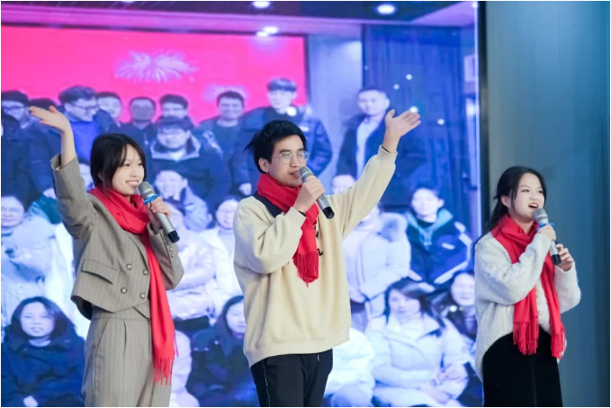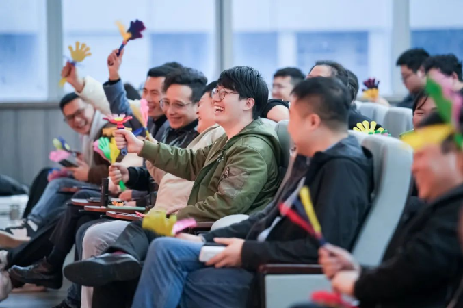 新年祝福視頻過后,現(xiàn)場的喜慶氛圍在一首歌曲表演下達(dá)到了頂峰。由文宣團(tuán)隊(duì)帶來的經(jīng)典歌曲《相親相愛一家人》,這一耳熟能詳?shù)母枨尨蠹叶家黄饟]起手來加入了合唱。伴隨著動人的音樂,背景短片還帶現(xiàn)場所有“雙童人”一起重溫了2022年的溫情瞬間,無論是車間一線生產(chǎn)人員的暖陽般的微笑,還是銷售人員拿著銷冠獎杯的喜悅,都一一呈現(xiàn)?;仡欉@一年,可謂是真正的大豐收!