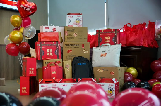 百份精美好禮:美的大冰箱、洗衣機(jī)、平板電腦、888元現(xiàn)金紅包、按摩儀、微波爐、足浴盆、年貨大禮包、空氣炸鍋…… 員工們真是拿到手軟,笑得都快合不攏嘴啦!