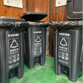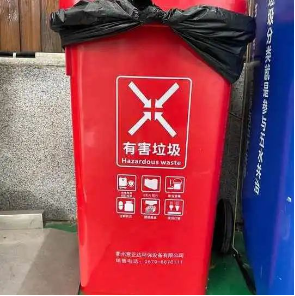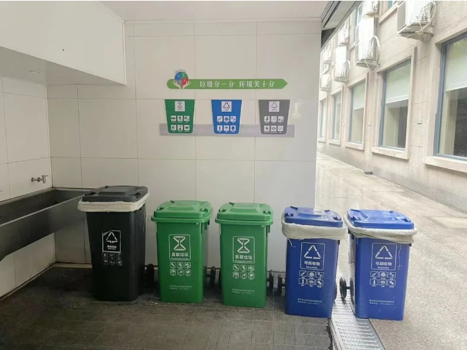 在“雙童”,各有紅綠藍(lán)黑等多個(gè)顏色的垃圾分類桶,分別將廠區(qū)的生活垃圾分為了易腐垃圾、其他垃圾、有害垃圾、可回收物四大類。
