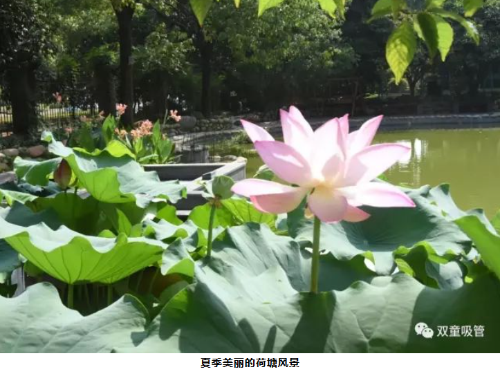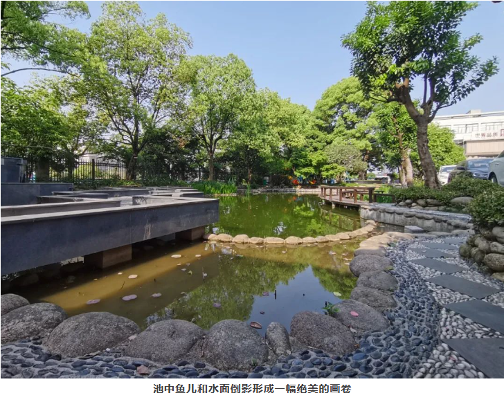 “雙童”人最喜歡駐足停留的便是行政樓前的中水景觀池了,池面將樹木、花朵、小橋融合在一起,一旁的樹木搖曳風姿,湖水在陽光的照耀下顯得格外美麗!