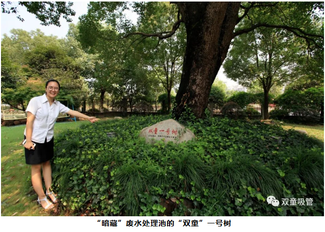 在這個(gè)過(guò)程中,員工日常生活中所產(chǎn)生的廢水過(guò)濾后,會(huì)流向生物吸附過(guò)濾池中,通過(guò)過(guò)濾池上栽種的樹(shù)木根須對(duì)水中的物質(zhì)、養(yǎng)分進(jìn)行再次吸附處理,這不僅能再次過(guò)濾處理廢水,同時(shí)也能讓樹(shù)木生長(zhǎng)的越來(lái)越好。我們“雙童”一號(hào)樹(shù)在剛移植過(guò)來(lái)的時(shí)候還是一個(gè)“小禿頭”呢,經(jīng)過(guò)十五年的時(shí)間,現(xiàn)在已經(jīng)成長(zhǎng)為一棵擁有一千多平方米樹(shù)冠的蒼天大樹(shù)了。