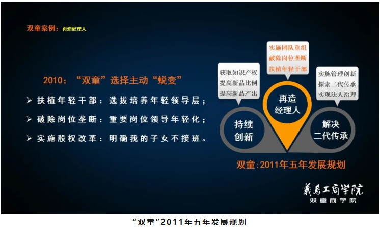 在傳統(tǒng)企業(yè)經(jīng)歷幾十年發(fā)展后,部分管理者必然會開始出現(xiàn)“活力遞減”現(xiàn)象,這是典型的“經(jīng)理人老化”現(xiàn)象。2010年,樓仲平在理解人性活力的“自然遞減”的現(xiàn)象以及經(jīng)理人老化自然規(guī)律后,下定決心通過組織變革來實(shí)施解決“經(jīng)理人老化”問題:明確扶植年輕干部,選拔培養(yǎng)優(yōu)秀的年輕領(lǐng)導(dǎo)層,解決二代傳承接班等問題。