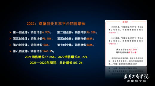 過(guò)去這兩年,雙童創(chuàng)業(yè)共享平臺(tái)分別實(shí)現(xiàn)銷售增長(zhǎng)57.8%、31.2%。相比2019年,疫情3年企業(yè)整體營(yíng)收逆勢(shì)增長(zhǎng)了2.6倍,30多名員工從“打工者”變身為“老板”。