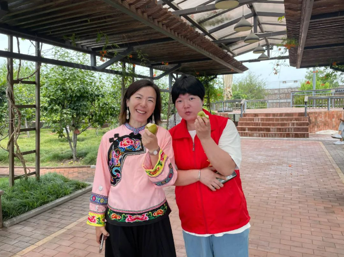 這個時節(jié)恰逢山花梨成熟,碩大的梨子掛滿枝頭,壓彎了樹枝,大家看到這個場景不禁興奮,隨手摘下一顆放入嘴巴里,清甜可口,對于燥熱的天氣來說,簡直太完美!