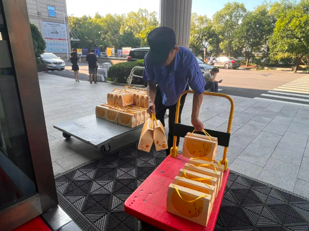 中秋福利準(zhǔn)備好啦!收到領(lǐng)取消息的小伙伴們,立馬拉著推車火速趕來了領(lǐng)取現(xiàn)場(chǎng),把本部門的福利全領(lǐng)走啦!有美味的月餅,還有酸酸甜甜的牛奶!