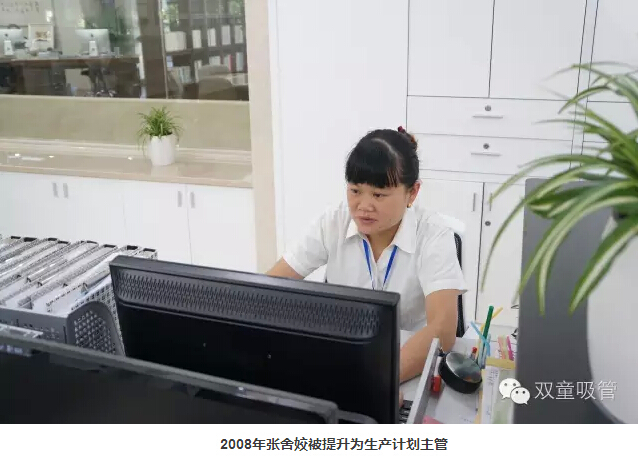 后來,她又成為了加管工,由于工作優(yōu)異,領(lǐng)導提拔她做了班長。結(jié)婚生子后,她回到公司又相繼做了質(zhì)檢員、終檢員等工作。2008年,她被提升為生產(chǎn)計劃主管,這一干就干到了現(xiàn)在。