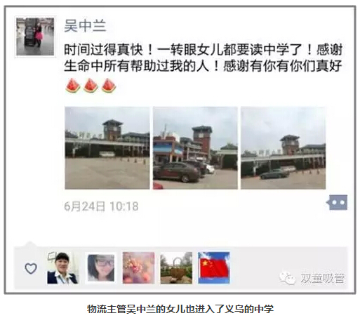原來,我們雙童在去年被評為了畝產(chǎn)效益A類前50家企業(yè)的榮譽,按照相關(guān)政策規(guī)定,評上此榮譽的公司中層以上員工的孩子就有機會可以上義烏本地的學校。這不,今年因為公司的這項福利而順利上了義烏學校的家庭就有五六家呢!