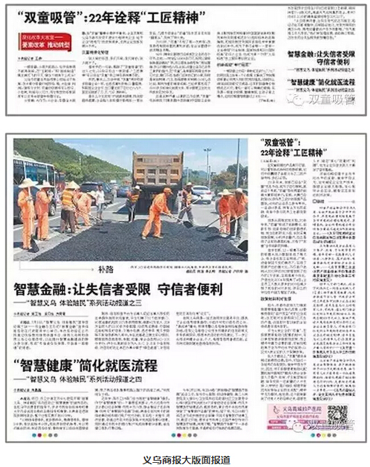 【“雙童”被媒體持續(xù)高度關(guān)注】《義烏商報(bào)》頭版大篇幅報(bào)道:“雙童吸管”:22年詮釋“工匠精神”!