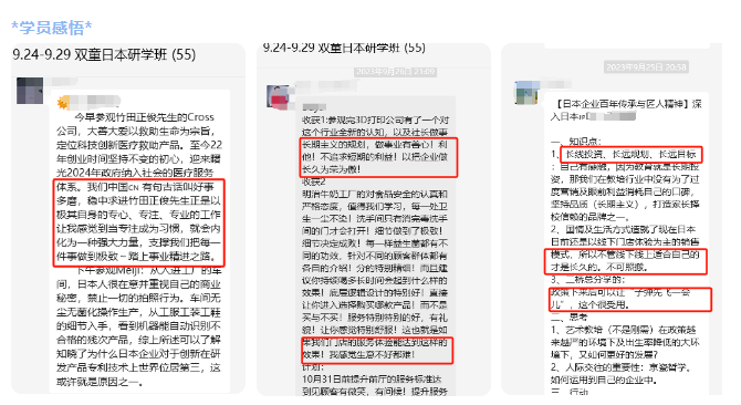 兩期日本企業(yè)游學(xué)之旅,很多學(xué)員都深受啟發(fā),在貫穿研學(xué)全程的巴士課堂上大家暢所欲言,分享所見所得所想。無論是從巴士課堂上的分享發(fā)言、還是從形成文字感悟來看,都能看出來大家收獲滿滿!