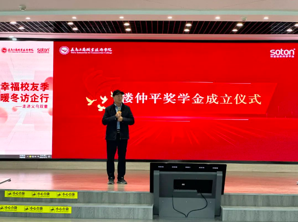 12月12日,義烏工商職業(yè)技術(shù)學(xué)院舉行“幸福校友季·暖冬訪企行”系列活動(dòng),校黨委書記李昌一行走進(jìn)“雙童”深入調(diào)研,并舉行教育基金捐贈(zèng)儀式和【樓仲平獎(jiǎng)學(xué)金設(shè)立儀式!