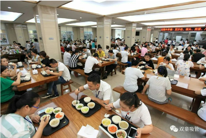 “雙童”整潔有序的員工餐廳環(huán)境