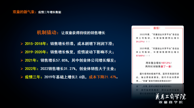 在2021年到2022年,兩年時(shí)間“雙童”銷售額復(fù)合增長(zhǎng)了107.2%。創(chuàng)業(yè)體板塊銷售額已超過(guò)主營(yíng)吸管板塊!相當(dāng)于用創(chuàng)業(yè)平臺(tái)“再造”了一個(gè)“雙童”!
