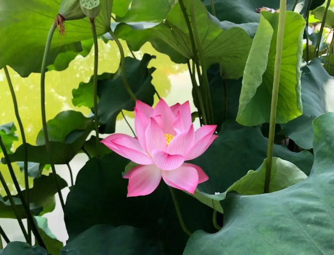 景觀池中還長(zhǎng)出了許多蓮蓬呢!