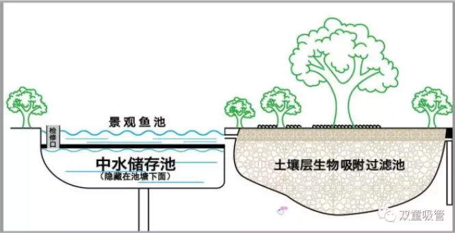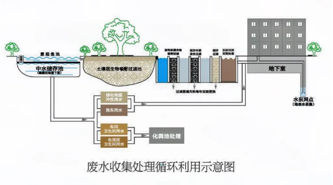 中水景觀池的精髓蘊(yùn)含于其命名之中,“中水”實(shí)則源自“雙童”廠區(qū)內(nèi)部經(jīng)過(guò)處理的生活廢水。值得注意的是,這些廢水并非直接呈現(xiàn)為我們眼前所見(jiàn)的池水景象,而是巧妙地存儲(chǔ)于景觀池下方的特定中水儲(chǔ)存池中。