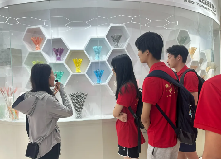 隨后,同學(xué)們深入吸管博物館展區(qū),逐一探索了吸管的歷史演變:從原始的秸稈吸管,到工業(yè)初期的紙制吸管,再到現(xiàn)代普及的塑料吸管,直至未來趨勢的聚乳酸可降解吸管,每一步都見證了人類智慧與環(huán)保意識的進步。