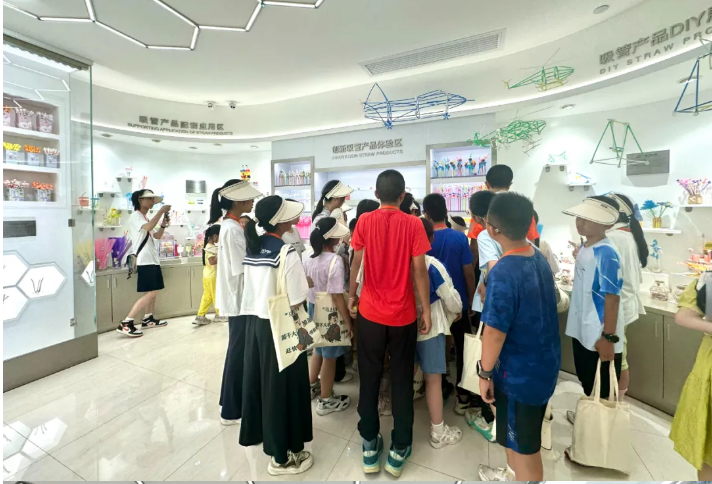 在探訪長吸管展示區(qū)與創(chuàng)意產(chǎn)品體驗區(qū)之際,同學們熱情高漲,紛紛聚攏,把吸管妞圍在中間,生怕遺漏了任何一絲關(guān)于這些吸管背后所蘊藏的大智慧與奧秘。
