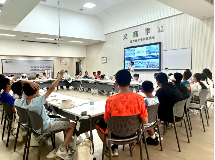 在百米文化長廊之下,吸管妞借助一幅幅生動鮮活的畫面,深情并茂地向同學們講述了“雙童”創(chuàng)始人樓仲平伯伯那段傳奇般的“雞毛換糖”創(chuàng)業(yè)歷程,以及小商品市場如何從蹣跚學步到蓬勃發(fā)展的輝煌軌跡。