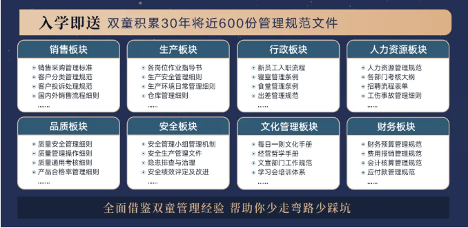 為了讓同學(xué)們?nèi)菀撞殚啠€貼心搭配了《雙童文件集錦》,樓仲平老師也悉心在現(xiàn)場(chǎng)為大家演示了使用方法,希望能夠幫助學(xué)員企業(yè)能夠全面借鑒雙童管理經(jīng)驗(yàn)、少走彎路、少踩坑!