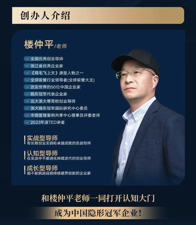 如果你是創(chuàng)業(yè)者、學(xué)習(xí)者、思想者,希望在經(jīng)營(yíng)領(lǐng)域有自己的思考和洞察,那么《隱形冠軍樓仲平思享薈》就是為你量身定制,今年最后一期招生,一班只招40位同學(xué),名額所剩不多,抓緊機(jī)會(huì)哦!