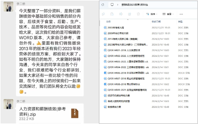 在課程交付完成之后,課研組踐行“掏家底”交付的原則,將“雙童”的薪酬績效體系和人力資源相關(guān)資料全部打包給到學(xué)員!