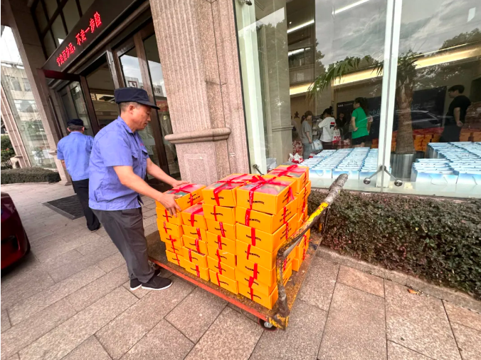 中秋福利準備好啦!收到領(lǐng)取消息的小伙伴們,立馬拉著推車火速趕來了領(lǐng)取現(xiàn)場,把本部門的福利全領(lǐng)走啦!有美味的月餅,還有30周年紀念杯!