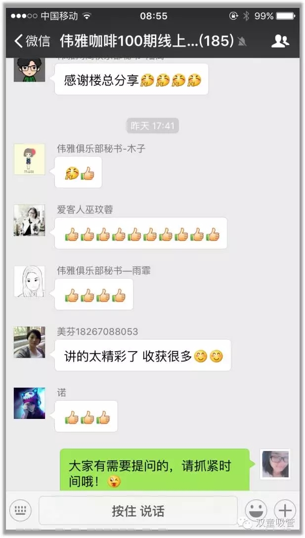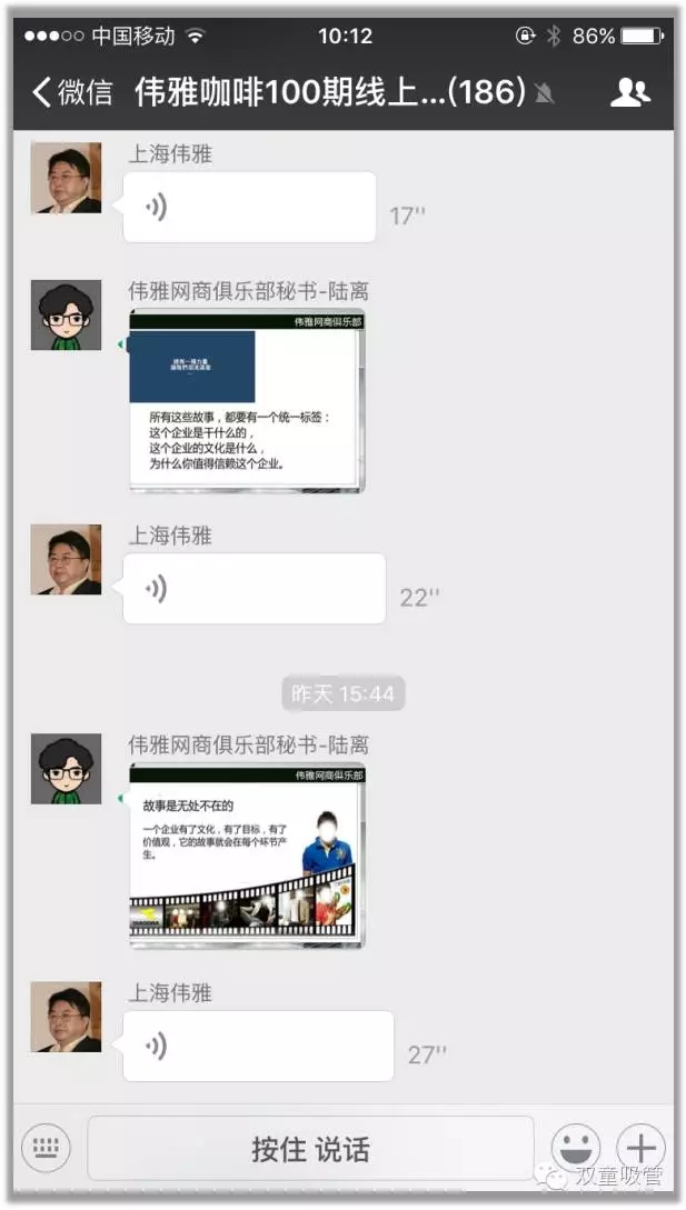 7月27日下午,吸管妞早在微信上預(yù)告過的上海偉雅網(wǎng)商俱樂部如期開始了偉雅咖啡線上沙龍!當(dāng)家人樓總首次在微信上進行線上直播課程,與近200號管理精英分享《雙童”是如何“講故事”的》課程,效果到底如何?我們趕緊來回顧一下!