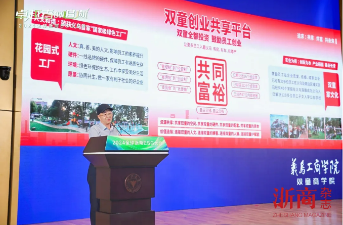 9月27日,“卓越者的追逐——2024全球浙商ESG大會”在杭州隆重舉行。本次大會匯聚了眾多行業(yè)頂尖專家和具有卓越影響力的企業(yè)家代表,共同深入研討ESG領(lǐng)域的前沿動態(tài)、實(shí)踐經(jīng)驗(yàn)以及未來的發(fā)展方向。雙童董事長樓仲平受邀出席,并發(fā)表了以《ESG實(shí)踐推進(jìn)雙童可持續(xù)發(fā)展》為主題的演講。