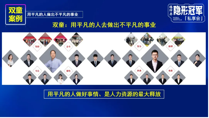 樓仲平老師在課上多次告訴大家:用平凡的人做好事情,是人力資源的最大釋放。但具體如何做,才能夠撬動(dòng)人性、激發(fā)活力呢?“雙童”這30年來(lái),是如何搭建完善的組織體系,確?!坝闷椒踩俗龊檬虑椤钡模?/span>