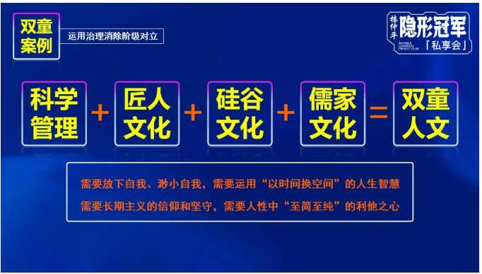 近40個(gè)點(diǎn)位的現(xiàn)場(chǎng)參觀(guān),都展示了雙童獨(dú)特的人文才塑造了強(qiáng)有力的雙童組織。雙童基于長(zhǎng)遠(yuǎn)追求,投入大量資源,去激發(fā)員工善意,從而達(dá)到“消除階級(jí)對(duì)立、減少彼此博弈”等立場(chǎng)沖突,運(yùn)用“文化經(jīng)營(yíng)和組織治理”等軟性工具獲得員工信任和認(rèn)同,長(zhǎng)期堅(jiān)守取得了巨大的成效。
