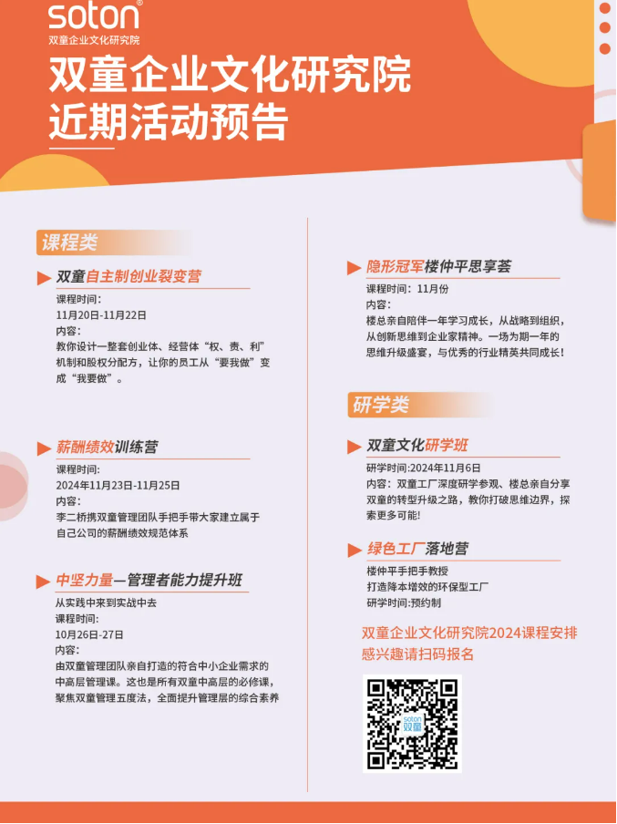 隨著“雙童”案例的廣泛傳播,自主制創(chuàng)業(yè)裂變機(jī)制也逐漸被越來越多研究者調(diào)研。為了造福更廣大的中小企業(yè),雙童商學(xué)院精心打造的自主制裂變營課程,目前已經(jīng)發(fā)展得相當(dāng)成熟,具備可復(fù)制性和可實(shí)踐性,完全契合中小微創(chuàng)業(yè)者的需求。