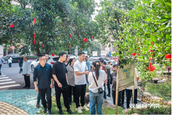 這是一個“長”在屋頂約5000㎡的空中生態(tài)園,也是“雙童”的另一張名片!這里有花卉和果樹200多棵。這次游學正好碰上了柿子大豐收,滿樹的果實像一個個“小燈籠”吸引大家駐足,在樹下一起采摘品嘗圖片圖片