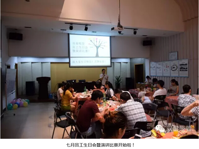 演講結(jié)束后,大家進行著各個環(huán)節(jié),唱生日歌、吹蠟燭、切蛋糕!我們每月的生日會都傾注了公司對員工的親切關(guān)愛,讓大家都以雙童為家,齊心協(xié)力同公司一同成長!