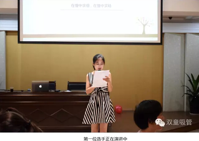 第一位選手演講的題目是《在慢中求細,在慢中求精》。通過兩位畫家畫畫的故事來說明了慢工出細活的道理,慢才更用心,慢才更精細,最終出來的作品也就會更精致、更完美。