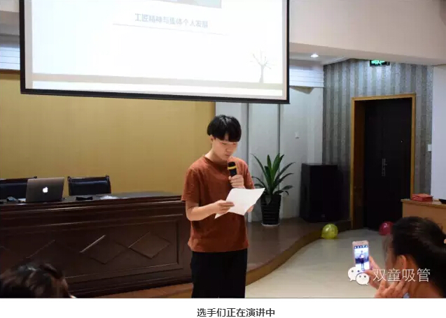 這次演講也吸引了不少暑期來雙童社會實踐的大學生們,瞧!這一位同學通過自身對匠心的理解,告訴大家堅持的重要性,在自己的崗位上做精做強,認準目標,絕不妥協(xié)和放棄!慷慨激昂的演講贏得了在場觀眾們一陣陣的掌聲!