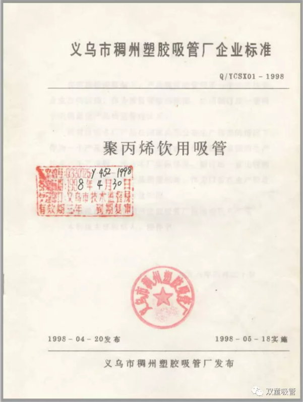 中國(guó)吸管行業(yè)最早的企業(yè)標(biāo)準(zhǔn)