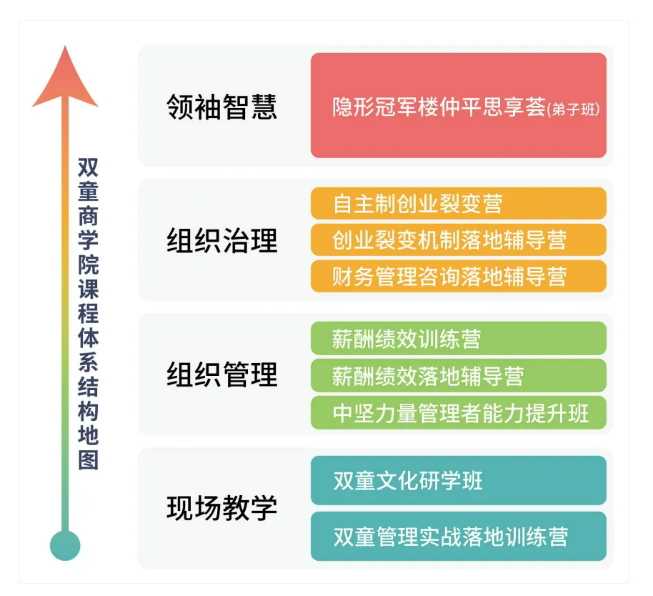 3)組織治理模塊:《自主制創(chuàng)業(yè)裂變營》專注于組織機(jī)制創(chuàng)新,幫助學(xué)員輸出一套企業(yè)組織創(chuàng)新方案,激發(fā)個(gè)體活力,推動企業(yè)裂變式增長。