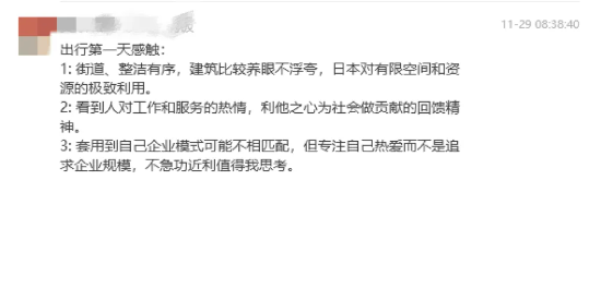 在第二期“弟子班”第一模塊《開啟創(chuàng)業(yè)者成長之門》中,樓老師曾反復(fù)影響同學(xué)們:拿著舊地圖找不到新大陸,這個世界并非經(jīng)驗積累的產(chǎn)物,而是通過“顛覆性破壞”創(chuàng)造的全新世界。所以,創(chuàng)業(yè)者思維“開門”至關(guān)重要,思維方式指導(dǎo)著創(chuàng)業(yè)者的行為!而本次日本冠軍之旅游學(xué),正是開啟新視野、實現(xiàn)思維“破局”的有效途徑之一。