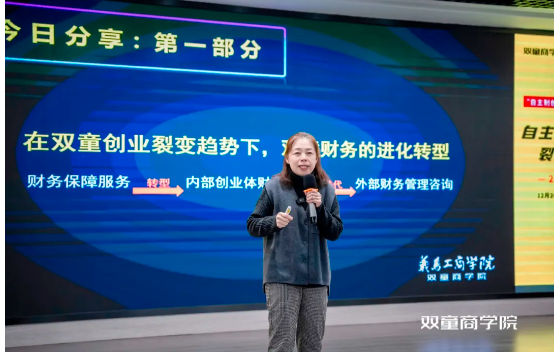 何在裂變機(jī)制落地過(guò)程中有效平衡公司平臺(tái)和各創(chuàng)業(yè)體之間的財(cái)務(wù)管理問(wèn)題,是很多學(xué)員非常重視的。為此,雙童商學(xué)院還特別邀請(qǐng)了雙童創(chuàng)業(yè)共享平臺(tái)財(cái)務(wù)總監(jiān)蔣秀芳來(lái)到課堂現(xiàn)場(chǎng),為大家分享雙童的操作管理經(jīng)驗(yàn)。