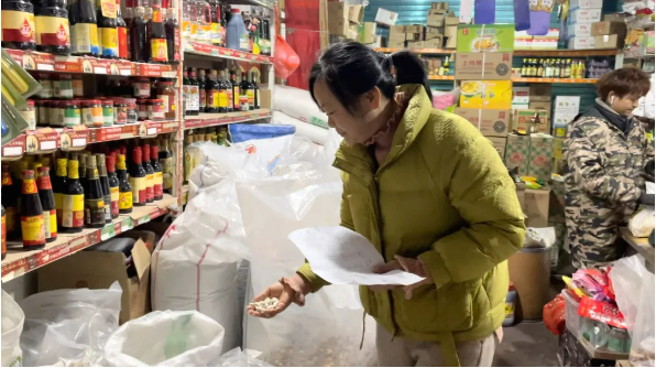食堂師傅正在對(duì)驗(yàn)收回來(lái)的菜品進(jìn)行登記