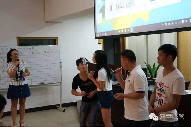 先不講PPT,玩游戲?啥游戲?往下看你就知道啦!現(xiàn)場被分為兩組,大伙用嘴叼著吸管傳杯子。用時最短的是同一車間較為熟悉的團隊,他們在游戲前經(jīng)過溝通協(xié)商,可見團隊協(xié)作的重要性呢!