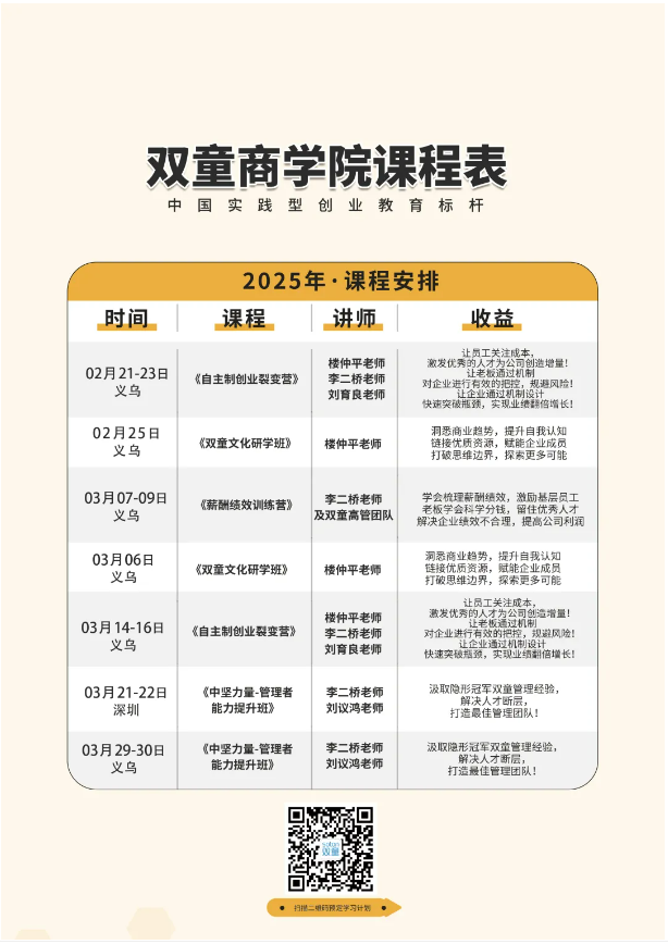 如果你也對“雙童”充滿好奇,也想賦能團(tuán)隊共同成長,歡迎走進(jìn)2月25日【雙童文化研學(xué)班】,與上百位優(yōu)秀的創(chuàng)業(yè)者一起學(xué)習(xí)!少量名額,歡迎咨詢鎖定!