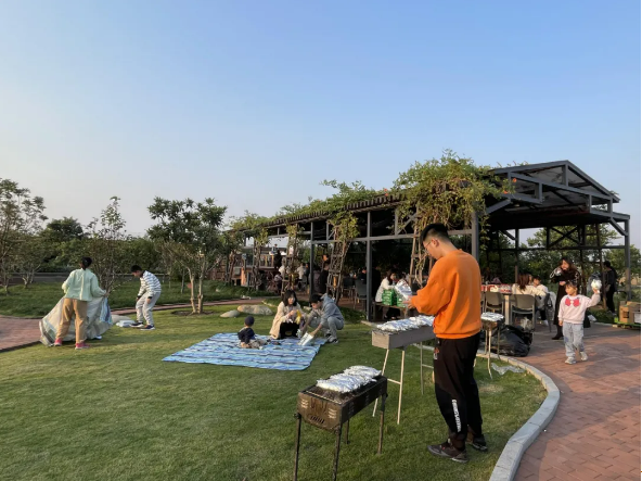 員工們?cè)谖蓓敾▓@野餐、燒烤~