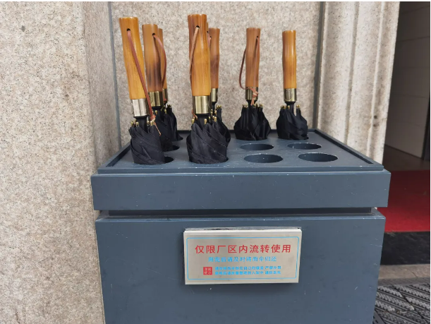現(xiàn)在,“雙童”在行政樓、生產(chǎn)車間大廳、餐廳、宿舍等人流量較大的6個(gè)點(diǎn)位投放了多個(gè)傘架,共300多把雨傘,確保在廠區(qū)任何位置都能就近找到點(diǎn)位進(jìn)行使用,最大化地解決員工雨天出行難的窘境,讓員工的工作和生活更有尊嚴(yán)。