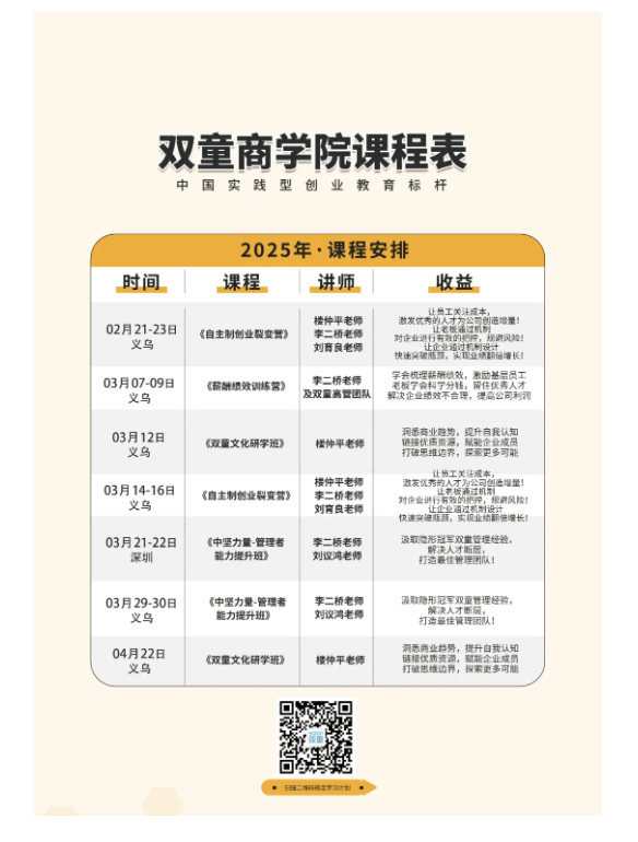 為了能夠助力更多中小企業(yè)也能運(yùn)用這套機(jī)制實(shí)現(xiàn)激勵(lì)員工、留住優(yōu)秀人才和業(yè)績倍增,雙童商學(xué)院早在2022年,雙童商學(xué)院就針對該機(jī)制打磨成《自主制創(chuàng)業(yè)裂變營》課程,并不斷地升級迭代,該課程已經(jīng)是一套非常成熟的、可復(fù)制、可實(shí)踐的課程,完全契合中小微創(chuàng)業(yè)者的需求。