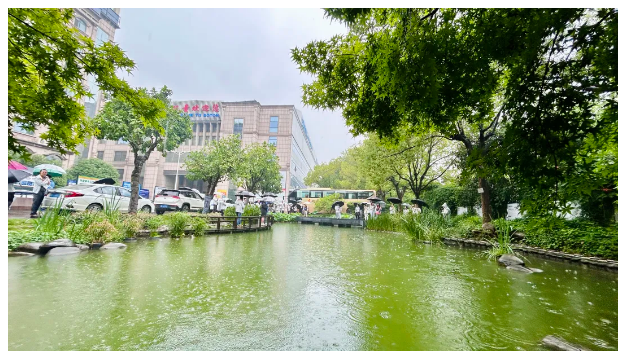 相鄰的這個池塘也是廢水裝置的一環(huán)。它實際上是兩層的,上面這一層是雨水收集,下面這一層是中水儲存。