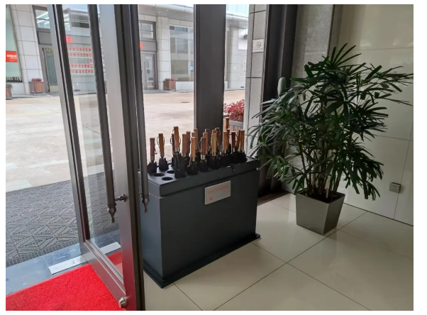 現(xiàn)在,“雙童”在行政樓、生產(chǎn)車間大廳、餐廳、宿舍等人流量較大的6個(gè)點(diǎn)位投放了多個(gè)傘架,共300多把雨傘,確保在廠區(qū)任何位置都能就近找到點(diǎn)位進(jìn)行使用,最大化地解決員工雨天出行難的窘境,讓員工的工作和生活更有尊嚴(yán)。