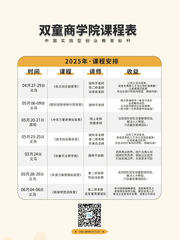 晴時(shí)有風(fēng)陰有時(shí)雨,如果你也對“雙童”充滿好奇,渴望深入了解雙童的企業(yè)文化并賦能團(tuán)隊(duì)共同成長,歡迎走進(jìn)【雙童文化研學(xué)班】,與上百位優(yōu)秀的創(chuàng)業(yè)者一起學(xué)習(xí)!