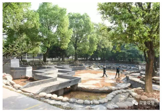 但是今天,趁著師傅們抽水清理的機(jī)會(huì),吸管妞決定為景觀池重新證明,它真的是“池中池”,真的是雙層的!