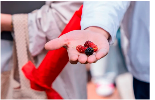 不少前來雙童游學(xué)的學(xué)員們,在親眼見到那掛滿枝頭、飽滿誘人的桑葚時,都被深深折服。